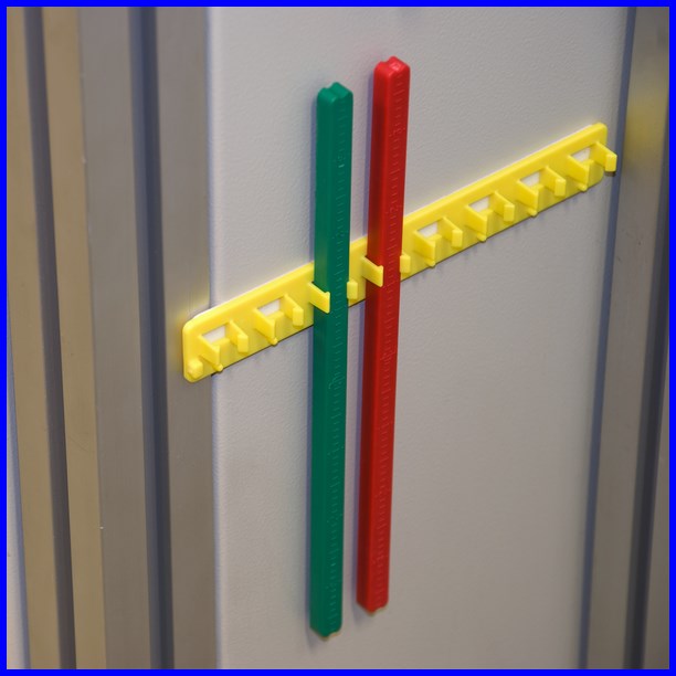 Pręty blokujące (czerwony i zielony) - długość 193 mm - są montowane na stałe na panelu elektrycznym.