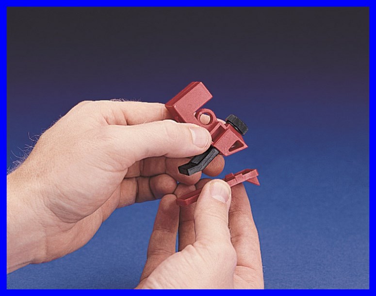 Blokada wyłącznika nadprądowego zaciskowa – 120/277 V Brady 176495