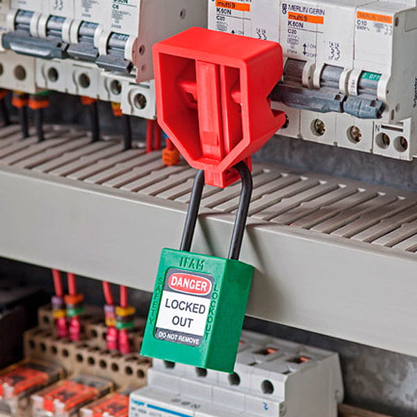 Wystarczy nasunąć blokadę na przełącznik i zablokować odpowiednio dobraną kłódką.