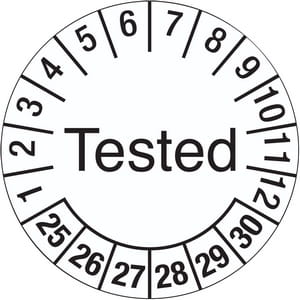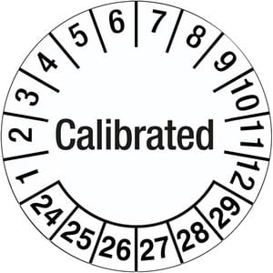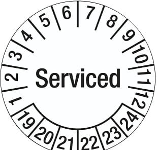 Etykiety do oznaczania dat przeglądów, inspekcji, kalibracji w postaci samoprzylepnych okrągłych etykiet.