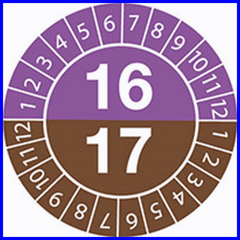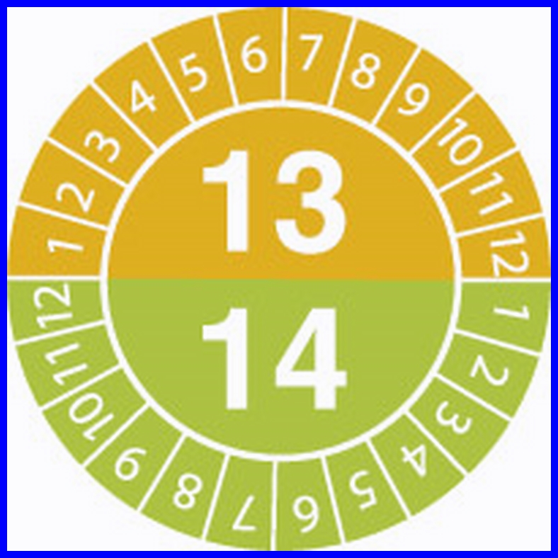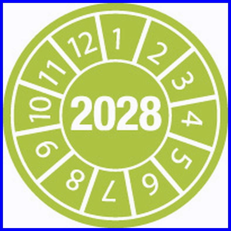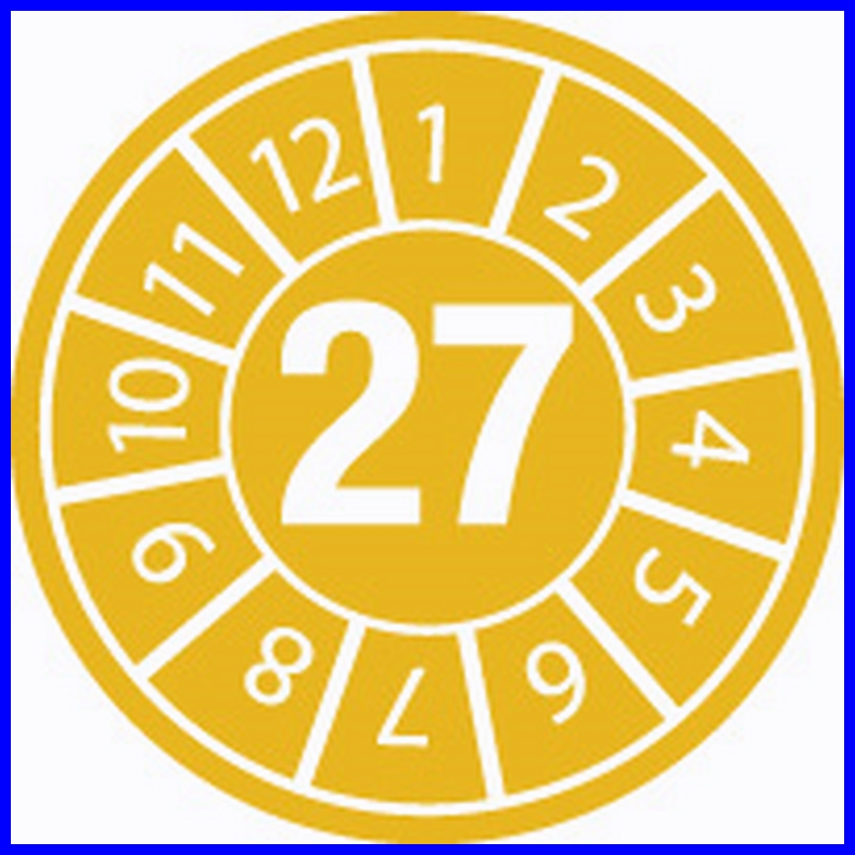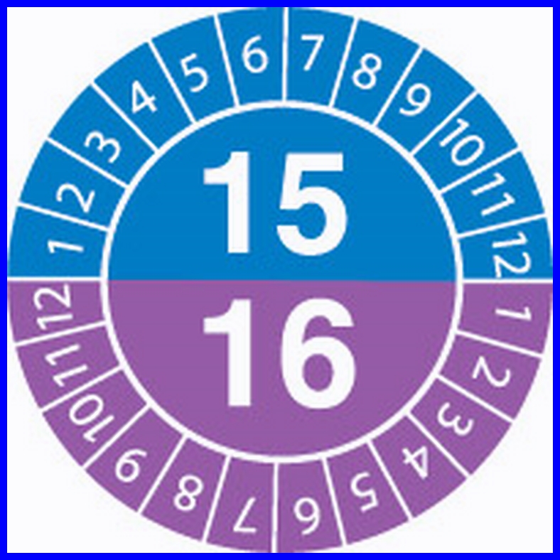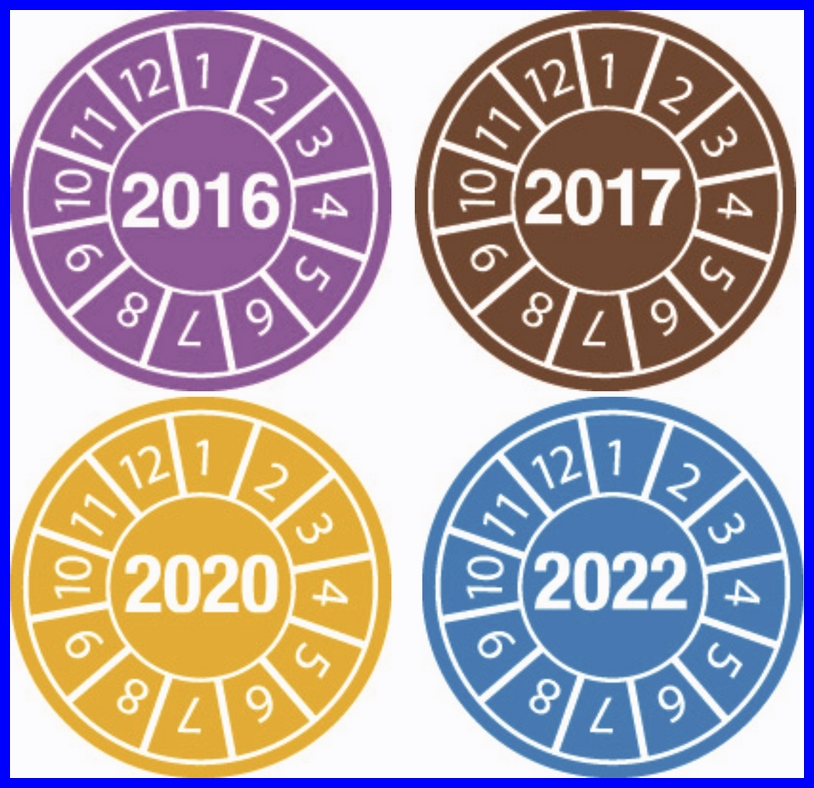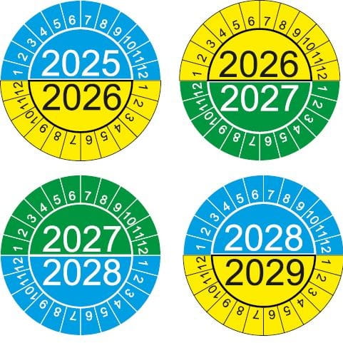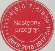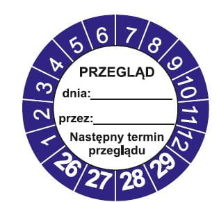 Etykiety do oznaczania dat przeglądów, inspekcji, kalibracji w postaci samoprzylepnych okrągłych etykiet. Kontrolki wykonane są z folii odpornej na UV i zaolejenia, i zabezpieczono warstwą odporną na ścieranie, odbarwienie, i warunki atmosferyczne (do stosowania wewnątrz i na zewnątrz budynków) dzięki czemu etykiety są czytelne przez cały okres użytkowania.