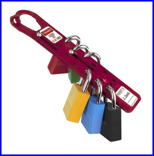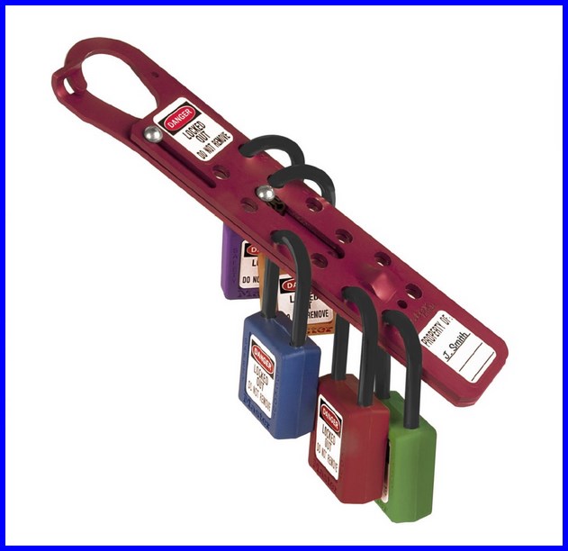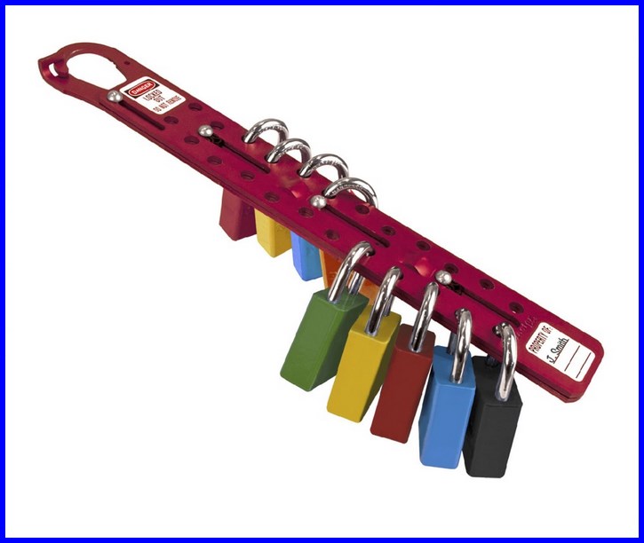 Klamra do blokowania zespołowego LOTO to urządzenie umożliwiające blokowanie jednej maszyny przez 12 lub 24 pracowników. Klamrę Lockout Tagout wykonano z nieiskrzącego aluminium anodowego. Blokada posiada brak możliwości zablokowania w pozycji otwartej.